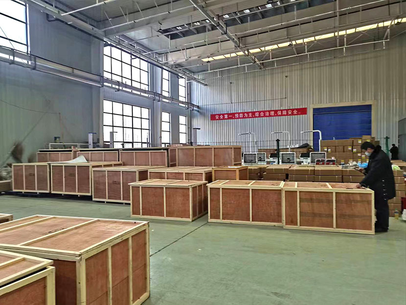 每一臺體檢機都由獨立大型木質(zhì)包裝箱嚴格密封,以此保證運輸過程中設(shè)備完好,順利抵達客戶端。昨天,工人們正在加班裝車搬運中....