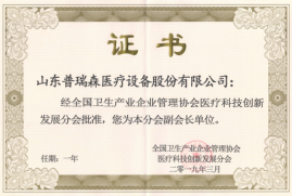 ——熱烈祝賀山東普瑞森醫療設備股份有限公司被評為副會長單位
